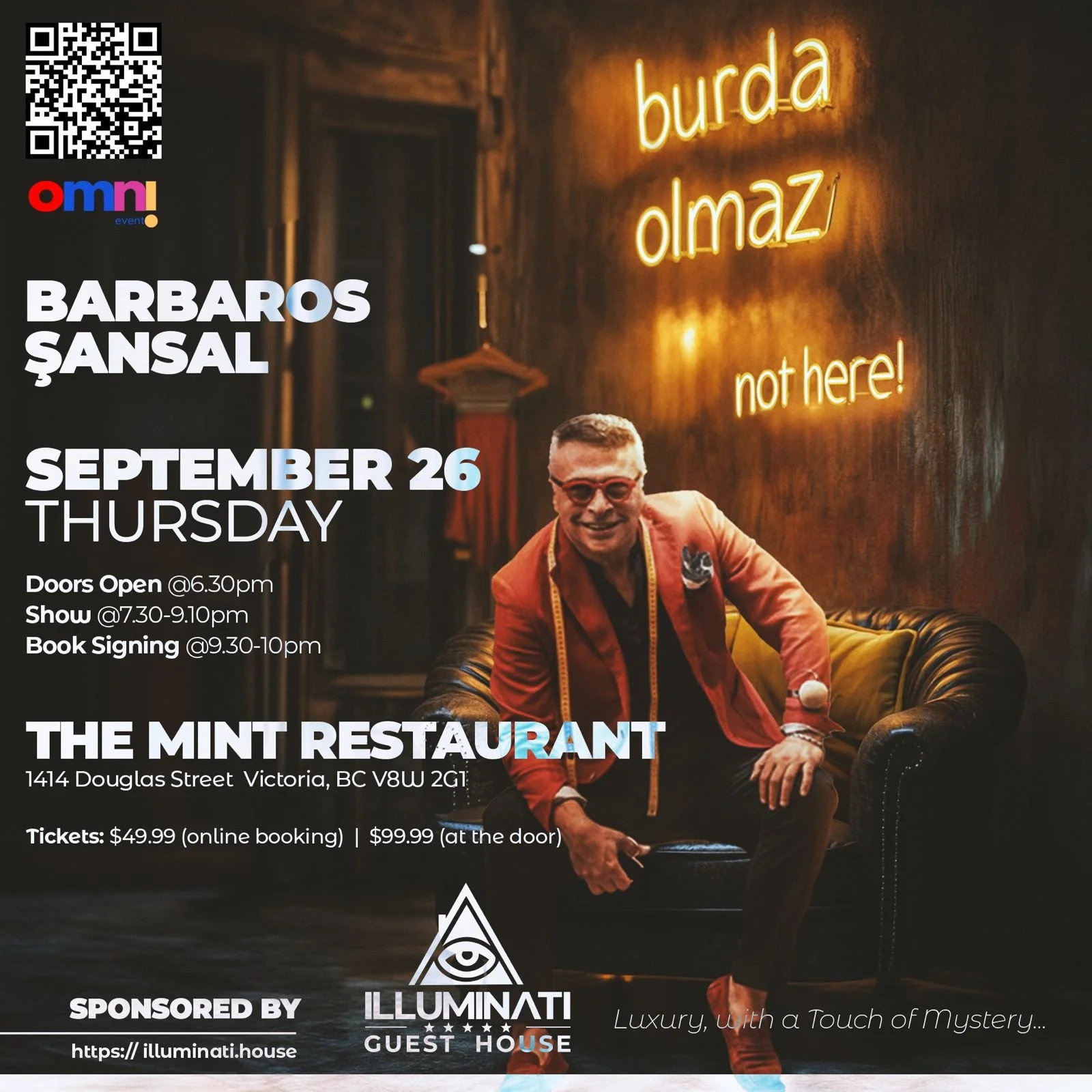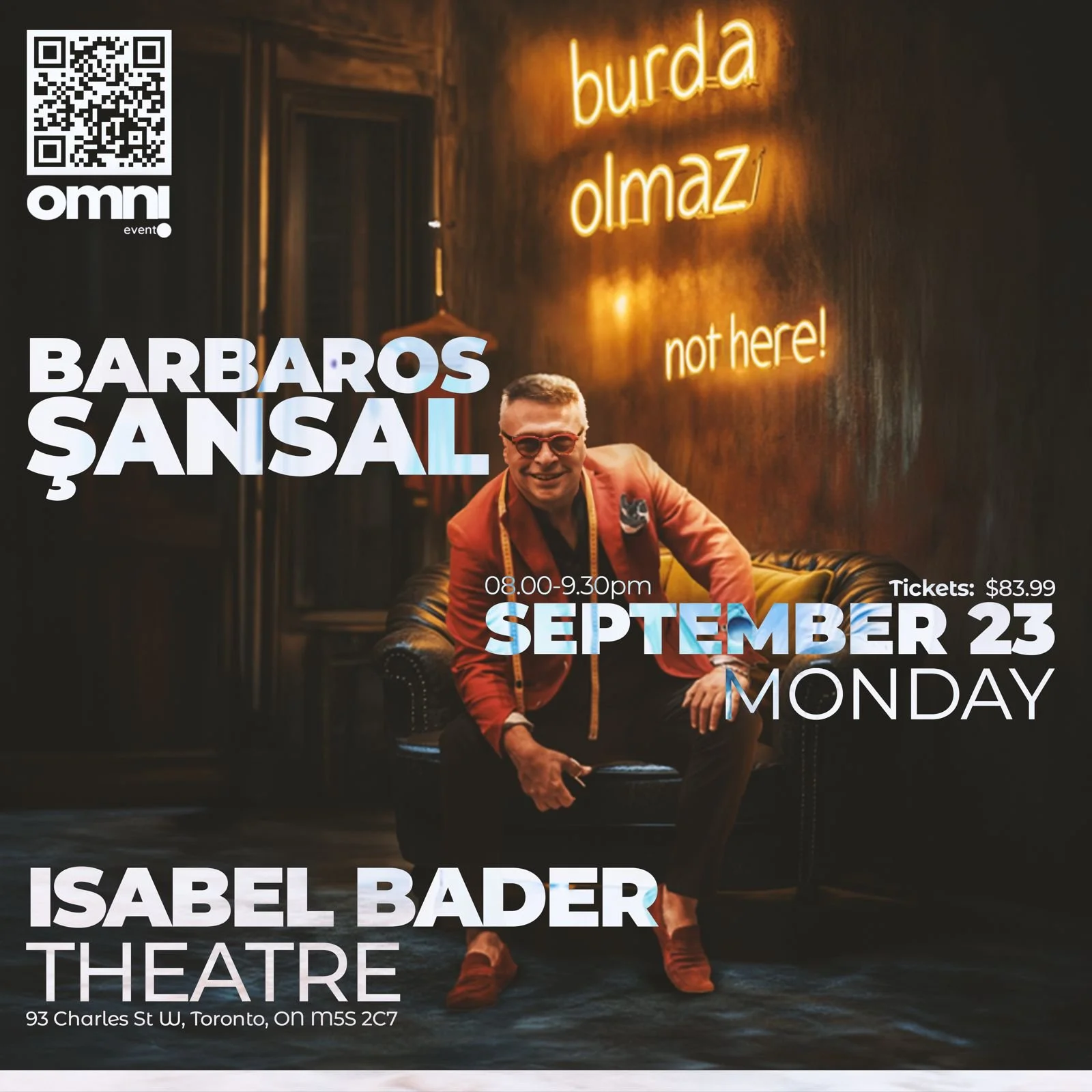 Barbaros Sansal’s performance “Burda Olmaz,” which continues to be staged in Turkiye and across Europe, is coming to Canada for the first time, hosted by Omni Event Management. This show is a narration of years of experience and lived moments. The “Tailor’s Apprentice” is here to tell us something, to remind us. Are you ready? “Burda Olmaz…”